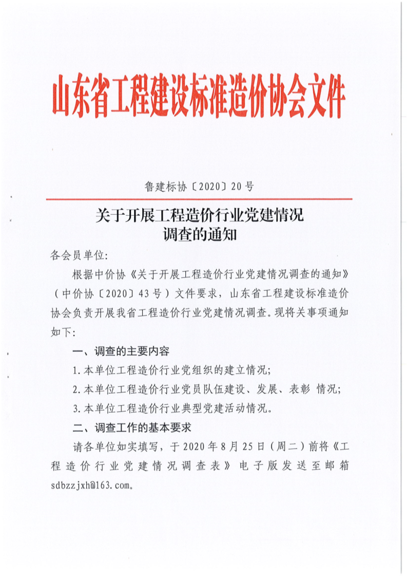 关于开展工程造价行业党建情况调查的通知
