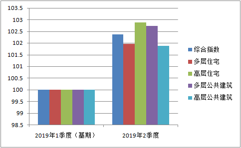 指数类别工程类型2019年1季度(基期)2019年2季度综合指数100.00102.36单项指数多层住宅100.00101.97高层住宅100.00102.87多层公共建筑100.00102.73高层公共建筑100.00101.88