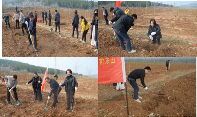 植树现场,大家两两成组、三人结队, 精神饱满、热情高涨,领取树苗、铁锹、水桶等工具后,迅速进入状态,严格按照技术人员的指导,有条不紊地完成挖坑、扶苗、培土、踩实、浇水等每一道工序。现场一派热火朝天却井然有序的景象,新栽下的树苗错落排列,在春风中轻轻摇曳,仿佛在向大家招手致意。经过近 2 小时的辛勤劳作,数十棵小树苗顺利扎根,为郭里镇的春日画卷增添了崭新的绿色篇章。